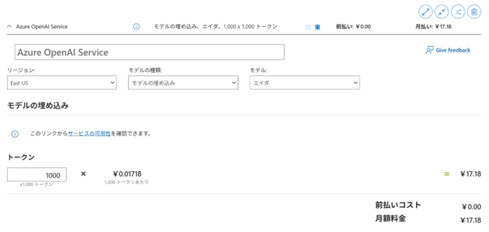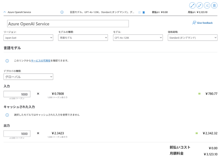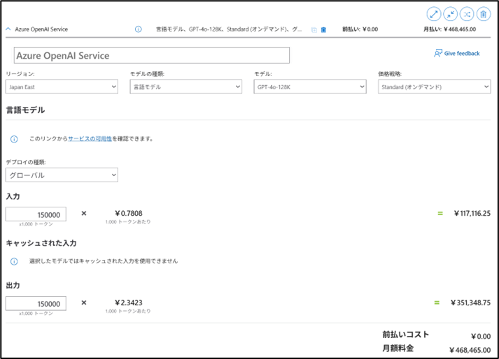 Azure OpenAIの料金も料金計算ツールのサイトで算出することが可能です。