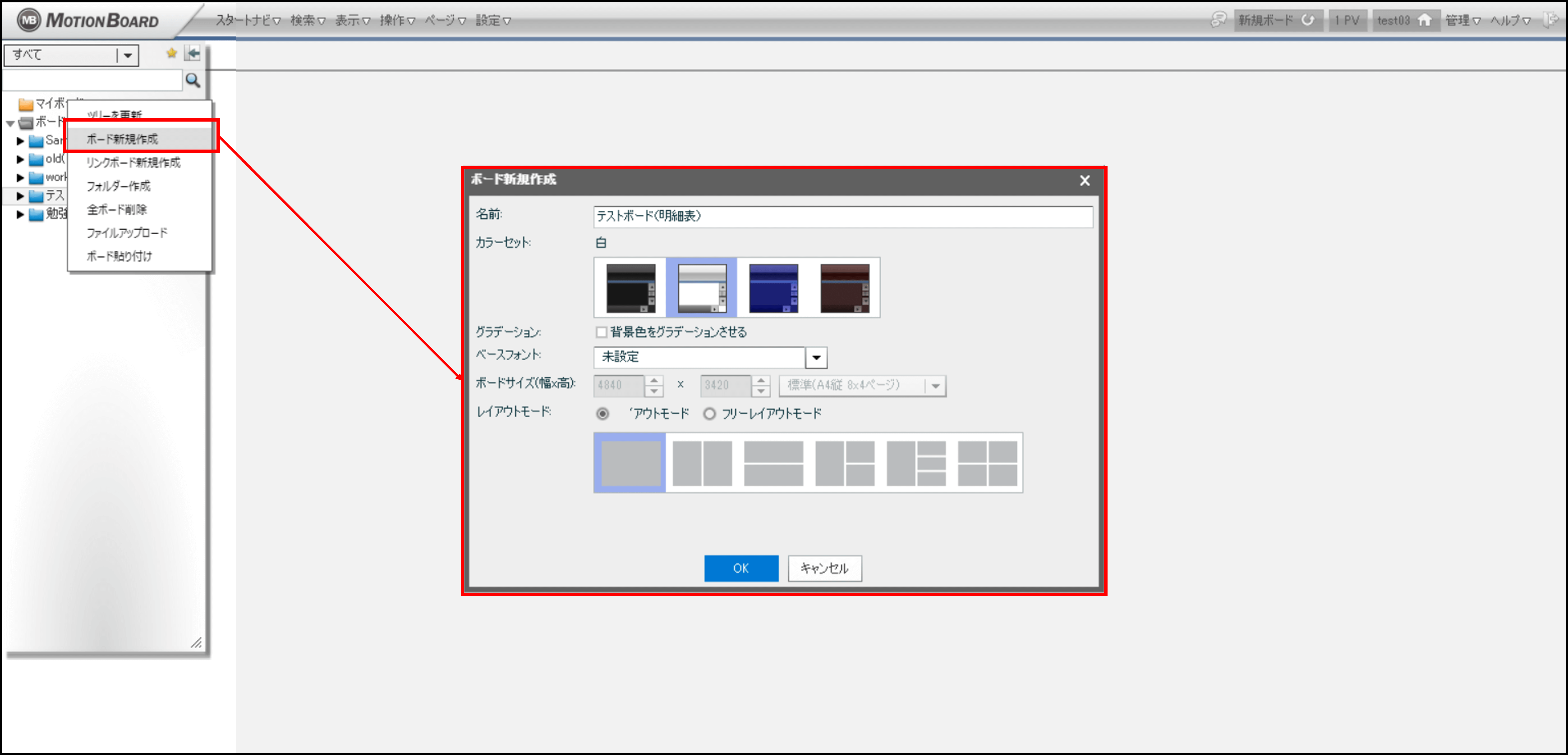 一からボードを作る場合は、フォルダを右クリックし「ボード新規作成」を選択します。