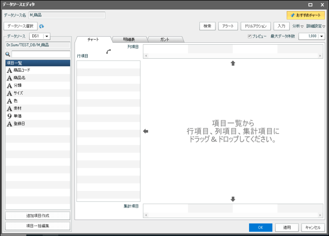 一通りデータソースの作成が終わったら、画面下部の「OK」をクリックしてデータソースエディタを閉じます。