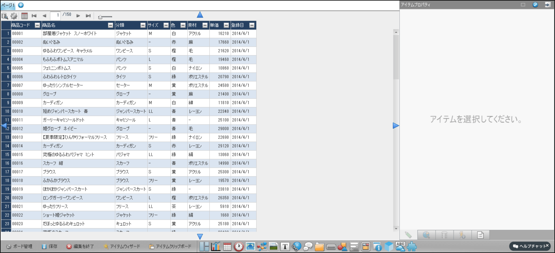 下図では、「商品コード」のボディの背景色を黄色に変更してみました。