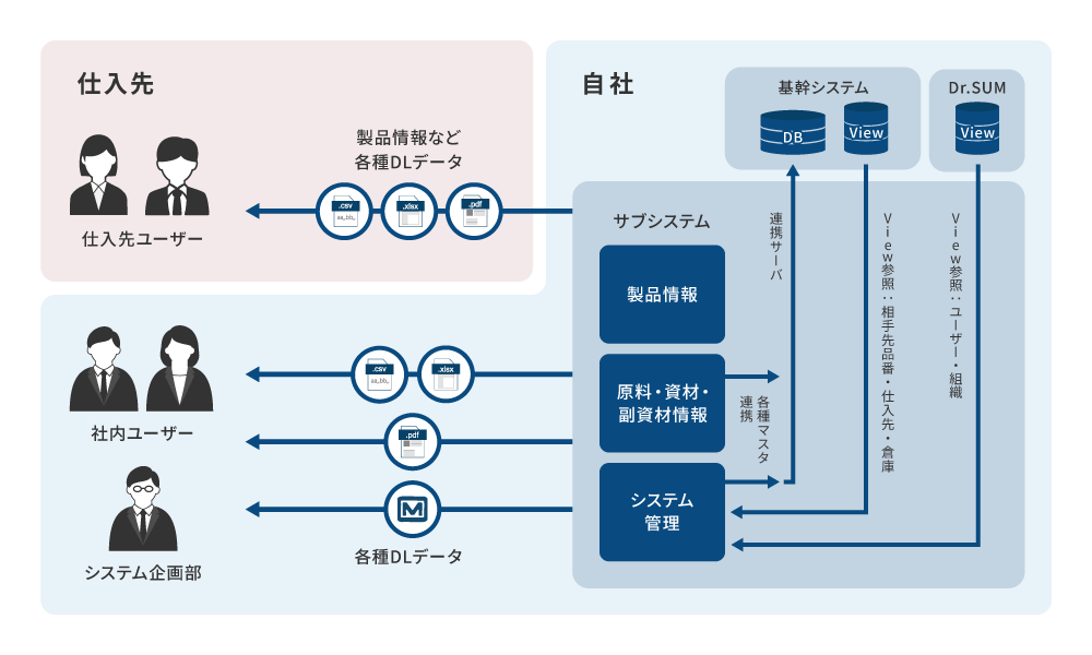 - グループ会社の合併に伴い、製品情報の効率的な取り扱いを実現するため、システムを構築しました。これにより、情報の分散を解消し、製品情報を一元管理できるようになりました。