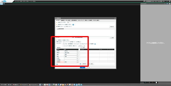 項目設定に、それぞれ対応する各項目を選択していきます。