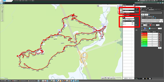 画面の「ポイント表示方法」は「なし」を選択し、地図要素一覧も画面内に残す項目のみにしてしまいましょう。