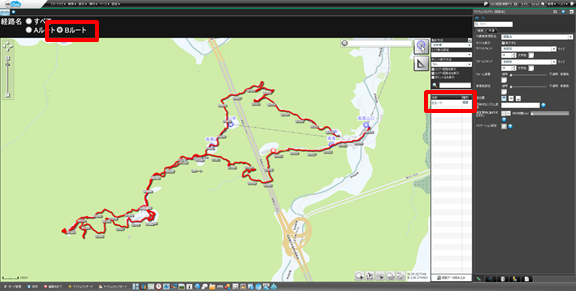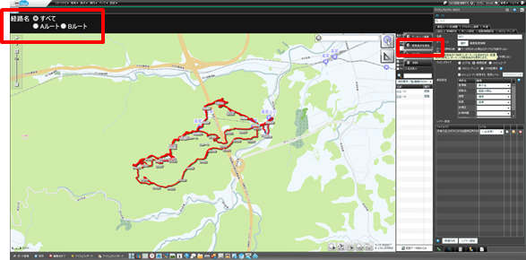 「Aルート」を選択すると「Aルート」の経路のみが表示されます。