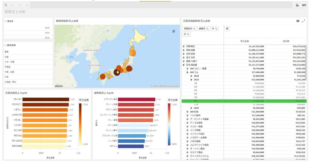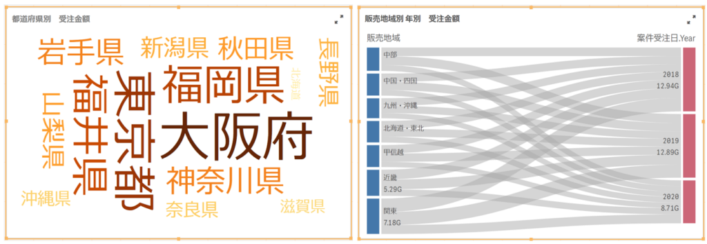 こちらが今回サンプルデータを使って「Qlik Sense」で作成してみたチャートです。