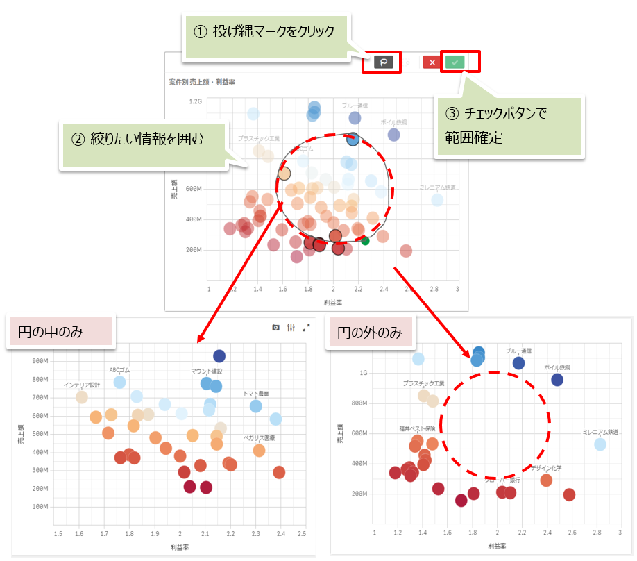 他にも直感的なデータの「選択・絞り込み」が可能です。