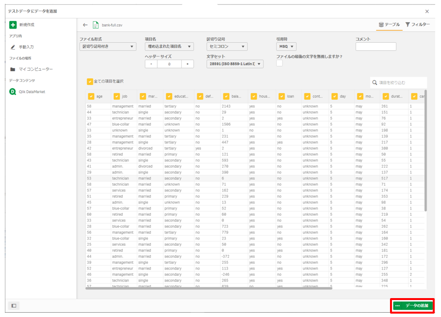 画面右下の「データの追加」ボタンを押して、データの読み込みは完了となります。