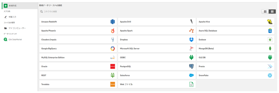 | Qlik Sense データソース一覧(2020/08 現在) | ||