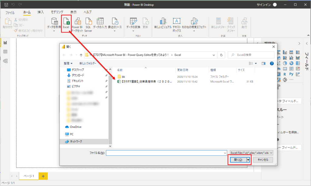 Power Queryエディターが起動しました。Excelファイルが読み込まれています。