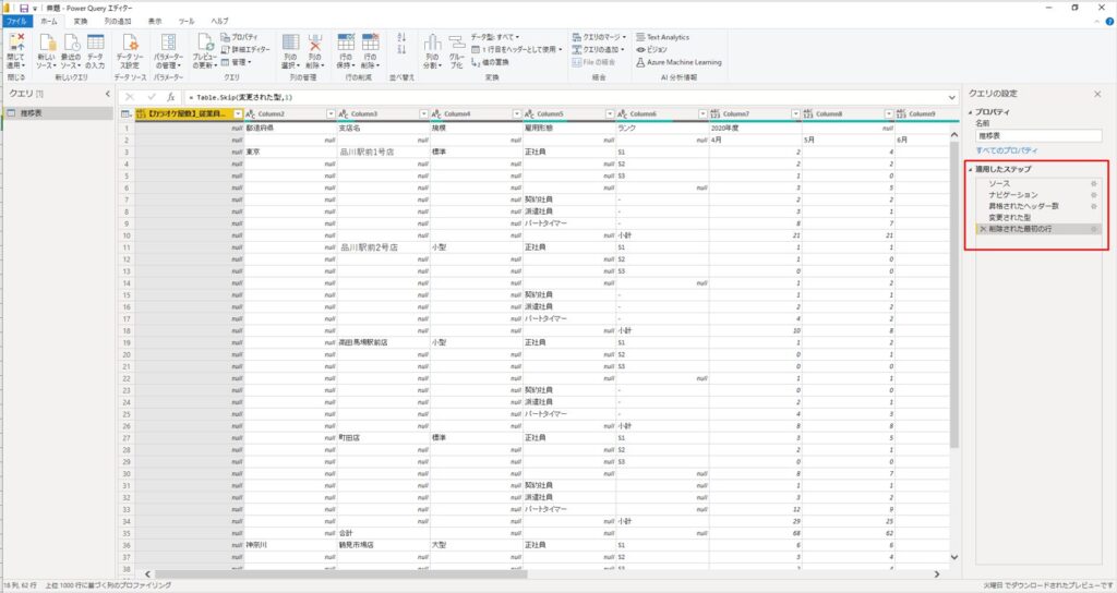 これが何を意味するのかというと、次回以降はPower Queryエディターに記録されたステップを実行するだけで、データの整形が可能になるということです。