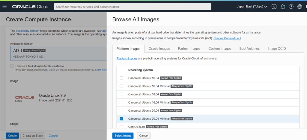 1. Always Free Edition対象のインスタンスを選択