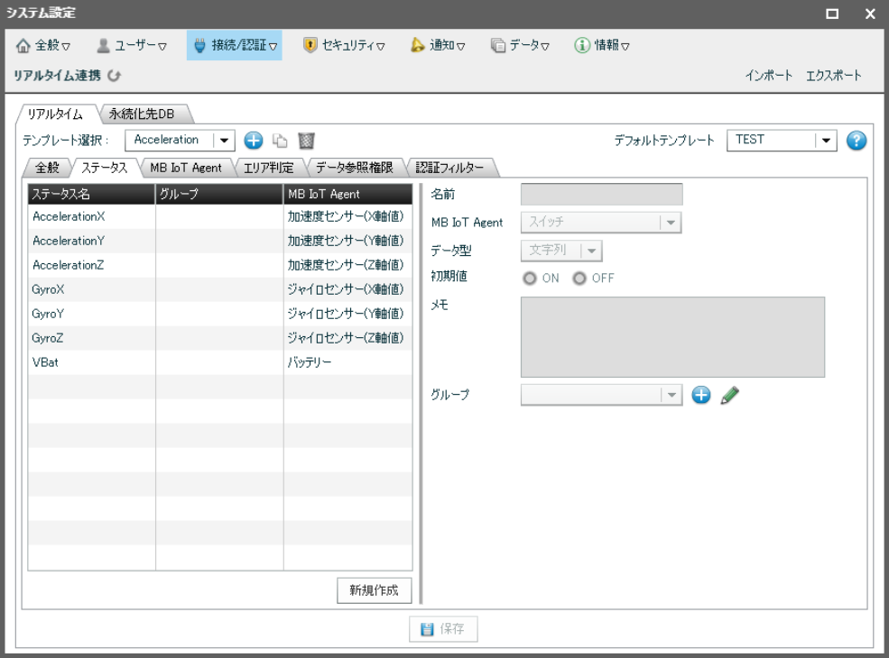 「ステータス」タブでIoTから受け取る値の受け取り方を設定します。