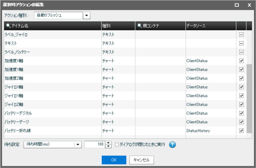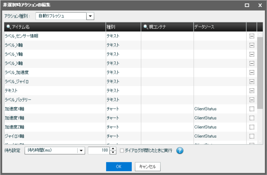 選択時アクションと非選択時アクションは下図の通り