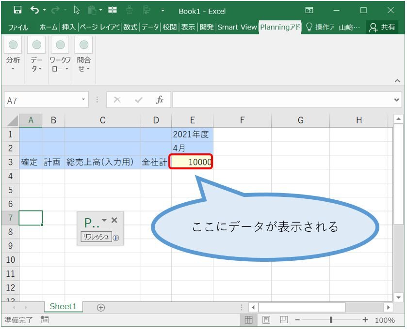 前章において接続した後にリフレッシュ関数を実行すると、Planningのデータを取得することができます。