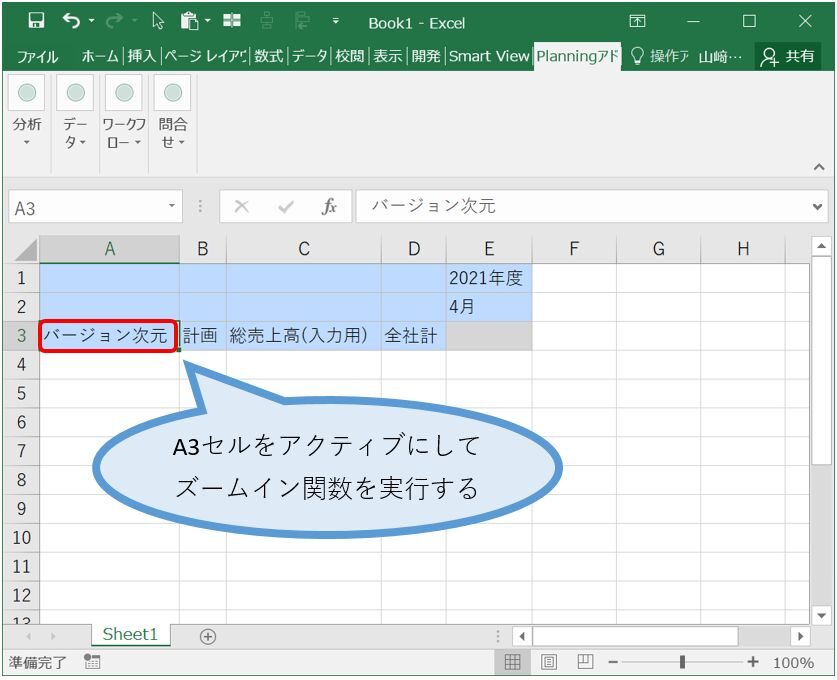 選択したPlanningのメンバに対してズームイン(ドリルダウン)を実施する関数になります。