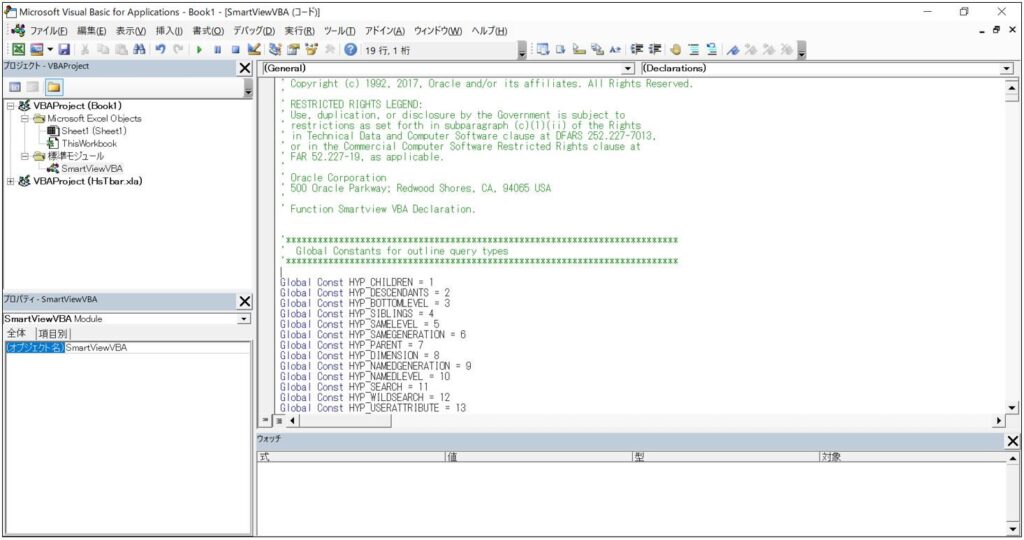 (ペースト後に、先頭行の「Attribute VB_Name = “SmartViewVBA”」は構文エラーになるため削除します。)