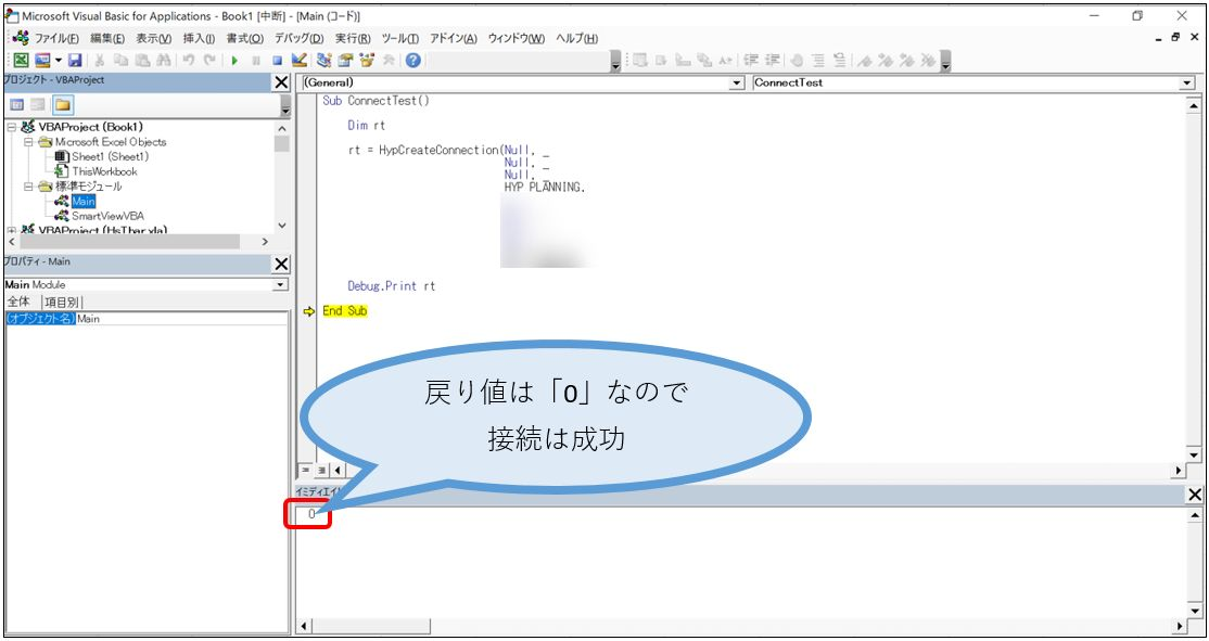 戻り値に0が戻っていれば、データベースプロバイダとの接続は成功しています。
