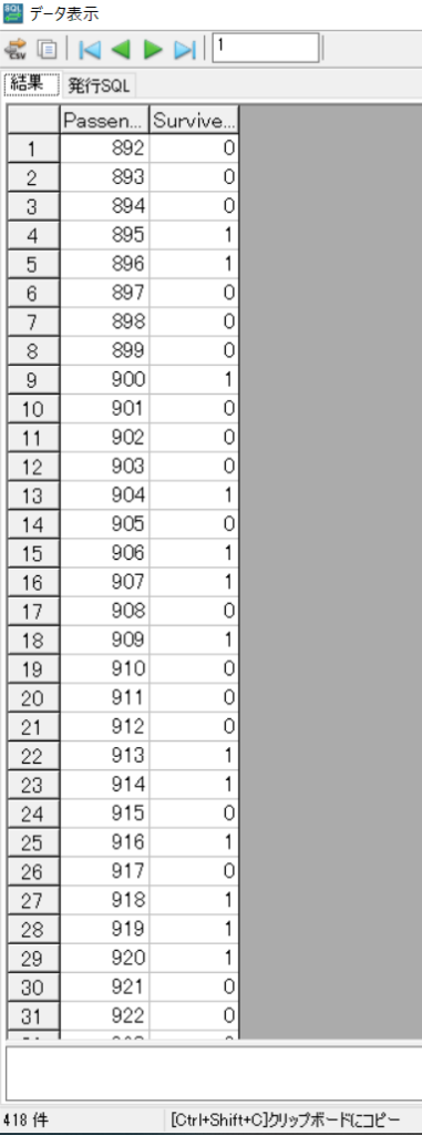 「手順② 予測モデルの作成」で作成したモデルをDr.Sumサーバから呼び出し、テストデータの生存者判定を行います。