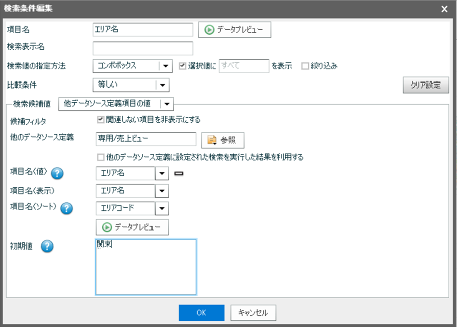 これらの解決法として、検索条件の編集から初期値を設定します。