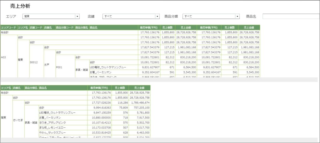 しかし、できる限り項目を減らした下の集計表の方が0.5秒程度、早く表示されます。