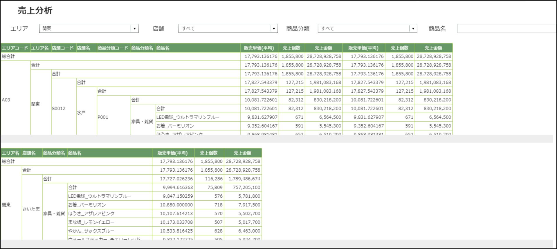 こちらの2つの集計表は、どちらも同じビューを用いていて全体処理時間も同じです。