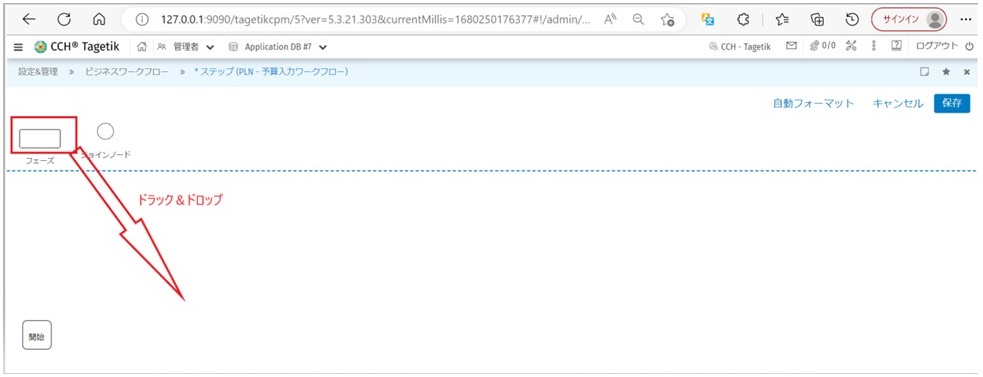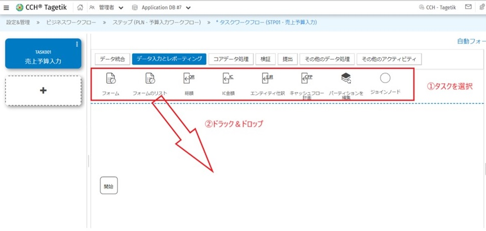 タスクを選択してドラック&ドロップしてタスワーククフローを完成させます。