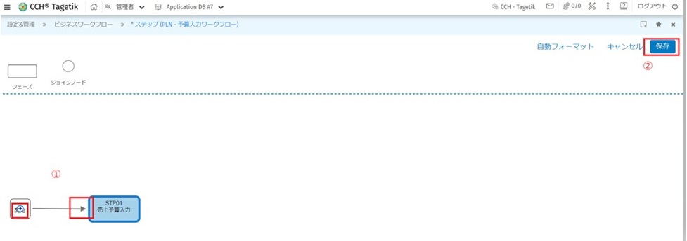 開始と定義したステップを紐づけて、保存ボタンを押します。