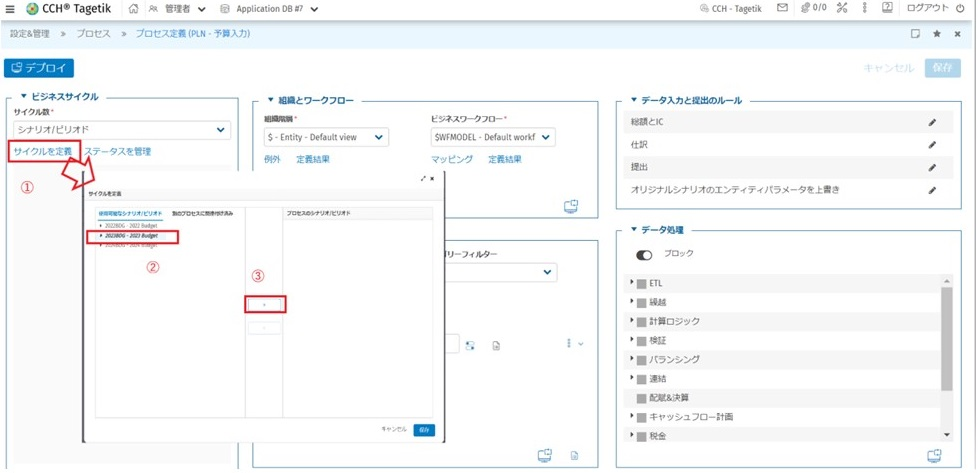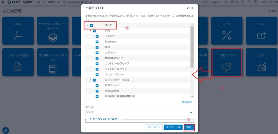※デプロイとはシステム設定の変更はCCH Tagetikに反映させる処理になります。