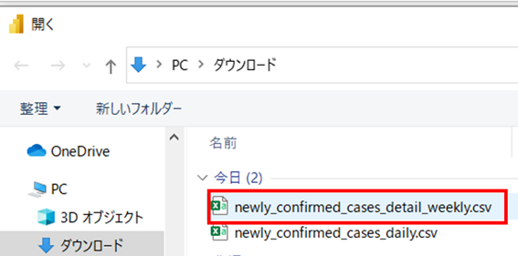 ③ 接続したいデータを選択し、「開く」を選択します。