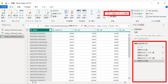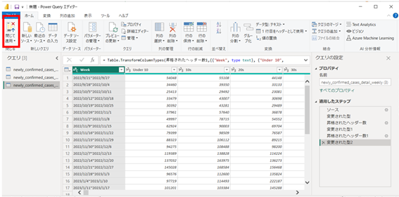 右下の「適用したステップ」が同じ表示になっていればOKです。
