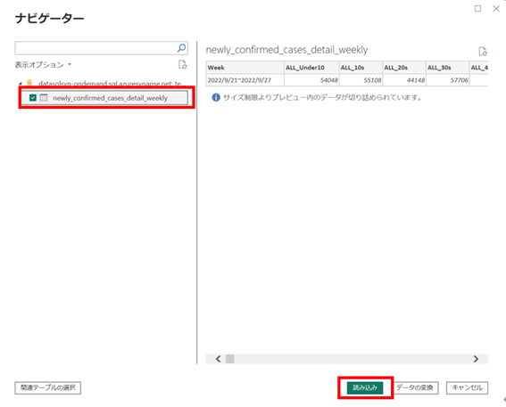 ④ 対象のデータを選択し、「読み込み」を選択します。