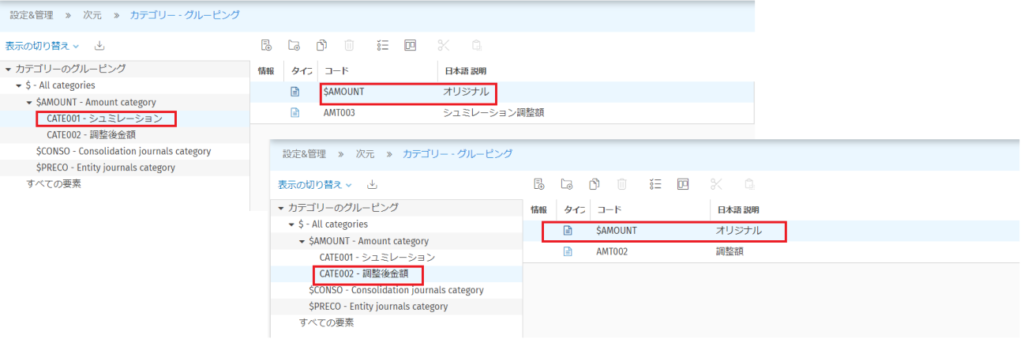 - カテゴリ・・・データの分類を表します。(例:配賦用のカテゴリ、ETLデータ用のカテゴリ)