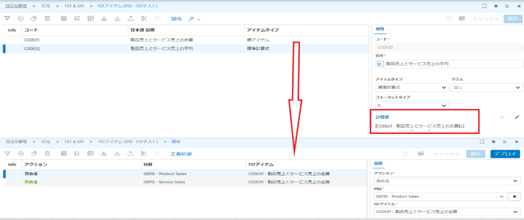 科目次元ではFSTという科目同士の計算式を設定できます。