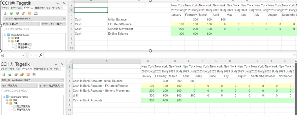 - シナリオ・・・シナリオと年度を表します。(例:Actual2023、Budget2024)