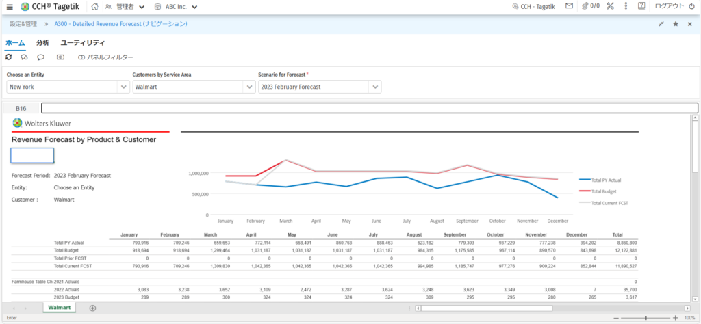 CCH Tagetikのレポート機能では、データベースに登録されたデータを数値やグラフなどで確認することができます。