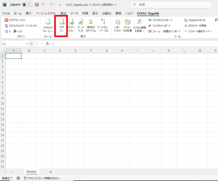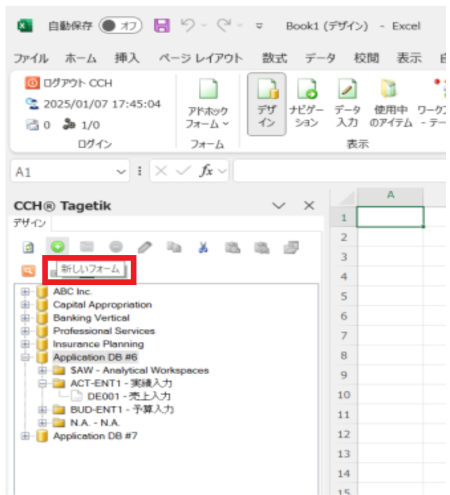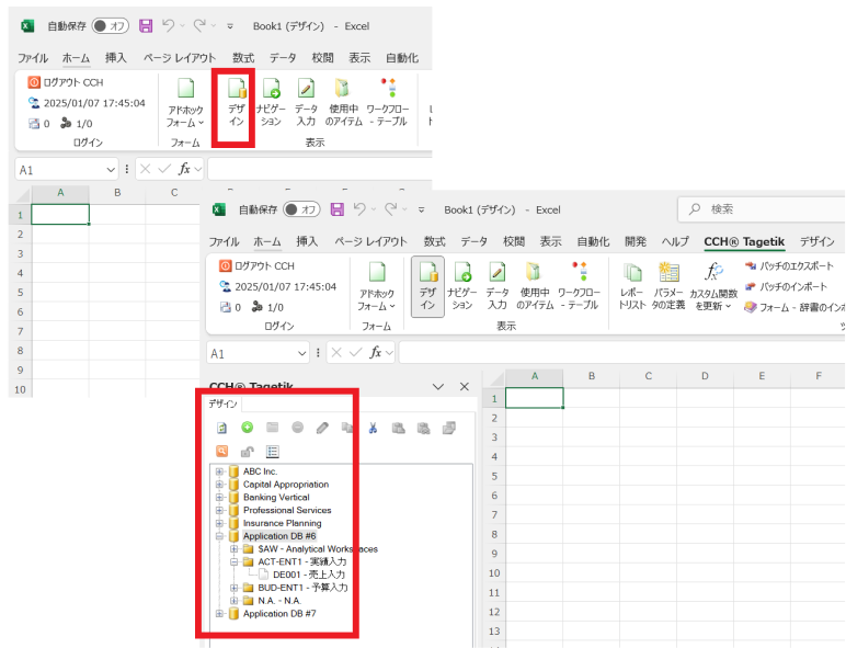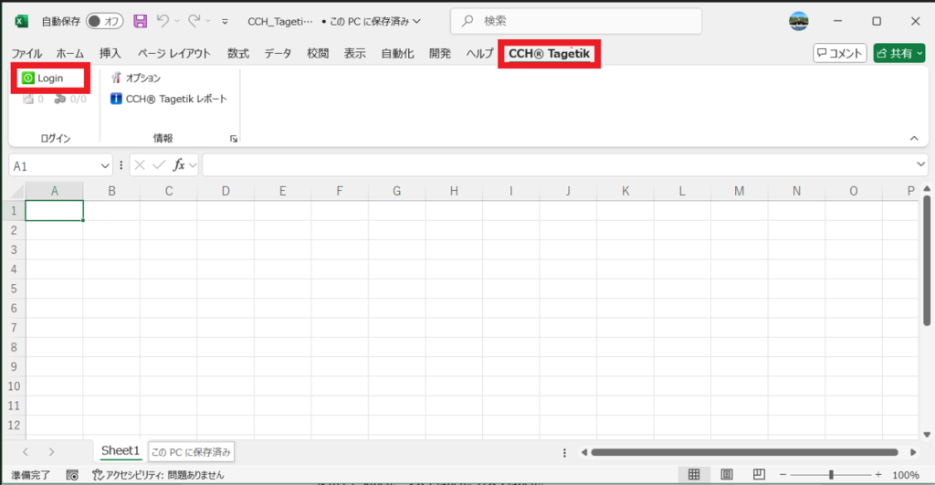 Excelを開き、[CCH Tagetik]タブからCCH Tagetikにログインします。