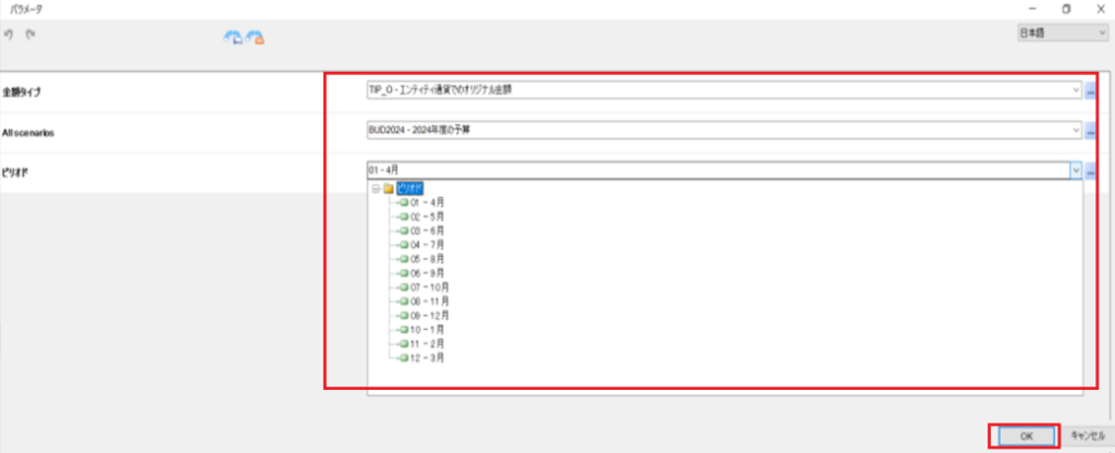 実行前に選択項目が表示されるので、項目を選択します。