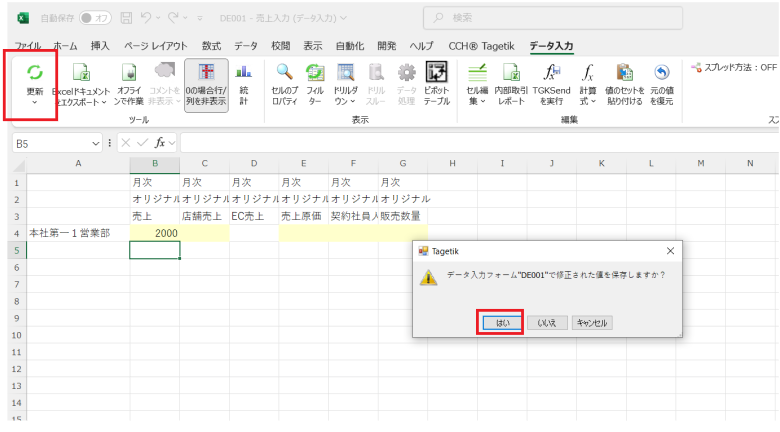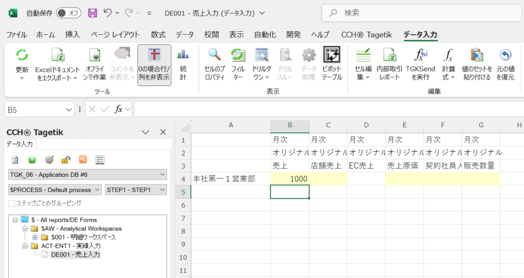 ※[Tagetik]タブはTagetikのExcelアドインです。
