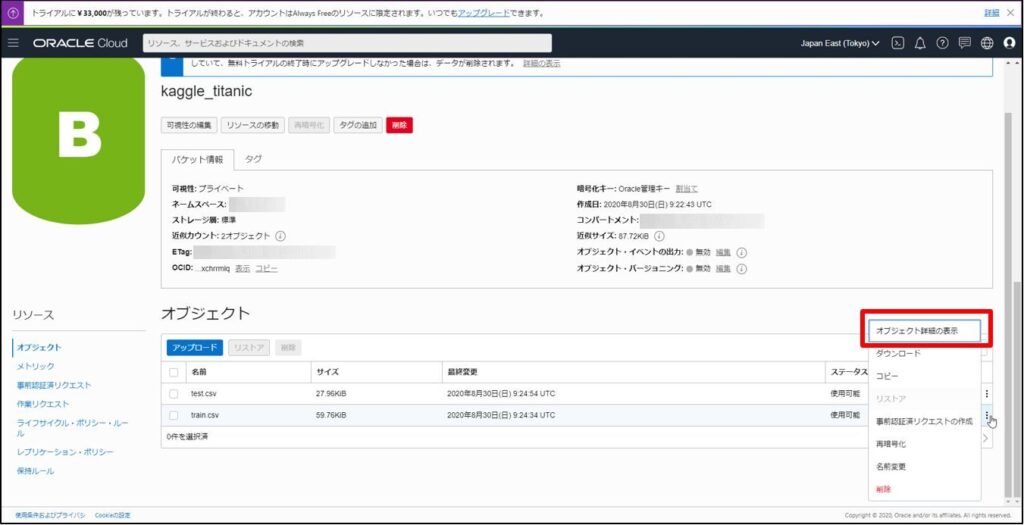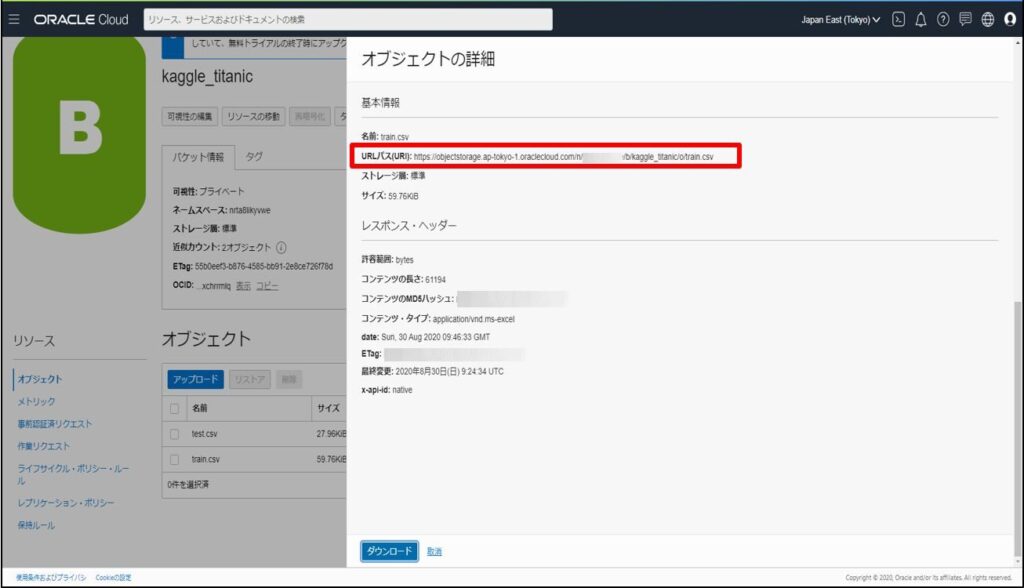 file_uri_list =>'https://objectstorage.ap-tokyo-1.oraclecloud.com/n/nrta8likyvwe/b/kaggle_titanic/o/train.csv',