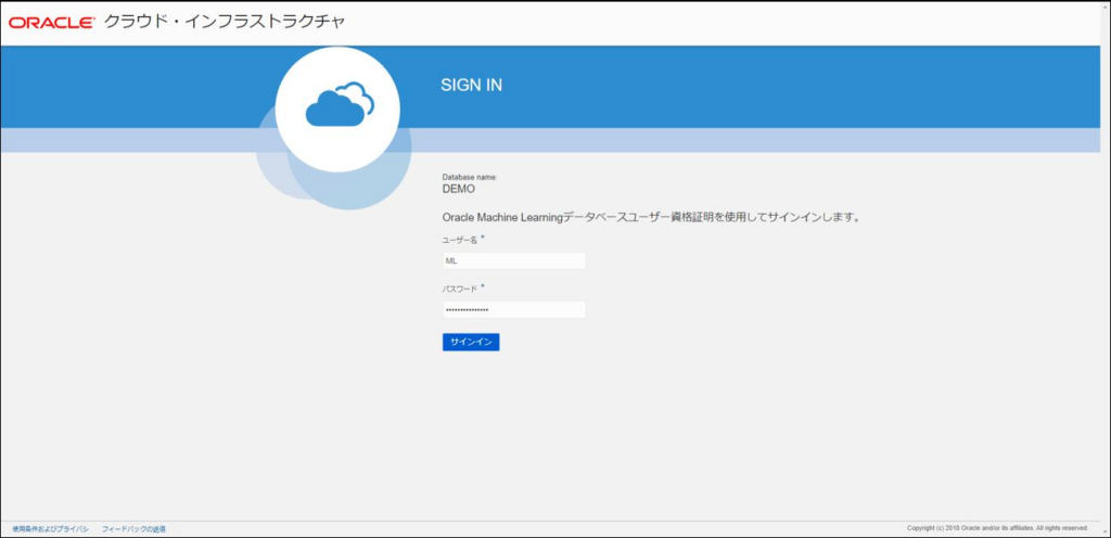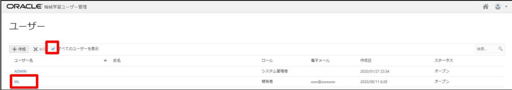 1.Oracle MLユーザ管理に「ADMIN」でログインします。