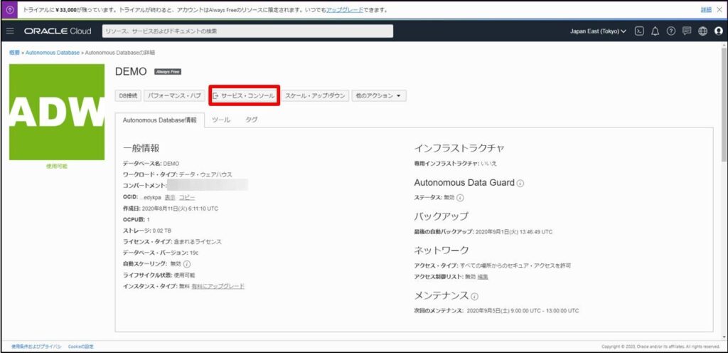 Oracle Cloud Free Tierでクラウドアカウントを作成し、ADW を構築