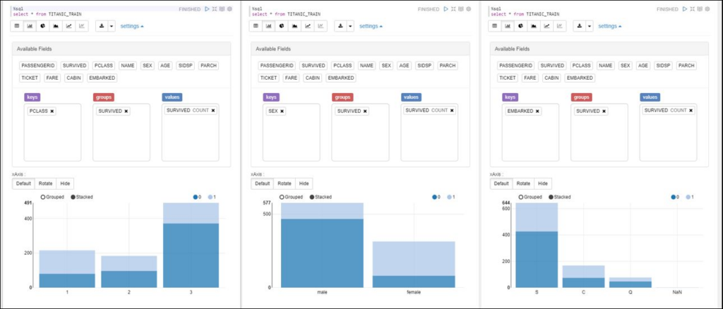 今回はVIEWを作成してNVL関数で欠損値を埋めるようにしていきます。また、今回は予測にこのままでは使えなさそうな「Name」「SibSp」「Parch」「Fare」「Cabin」をSELECT句からのぞきます。