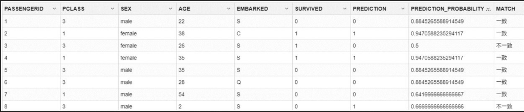 WHEN SURVIVED = PREDICTION THEN '一致'