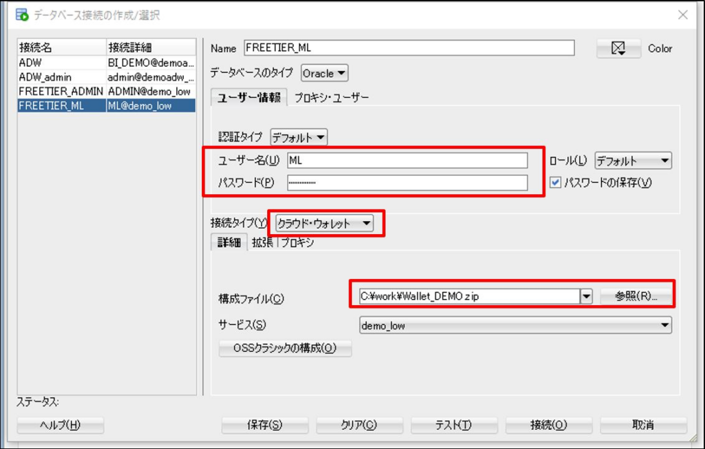 ※接続タイプで「クラウド・ウォレット」が出てこない場合は、最新の SQL Developer をインストールする必要があります。
