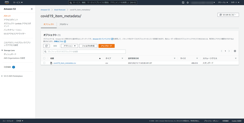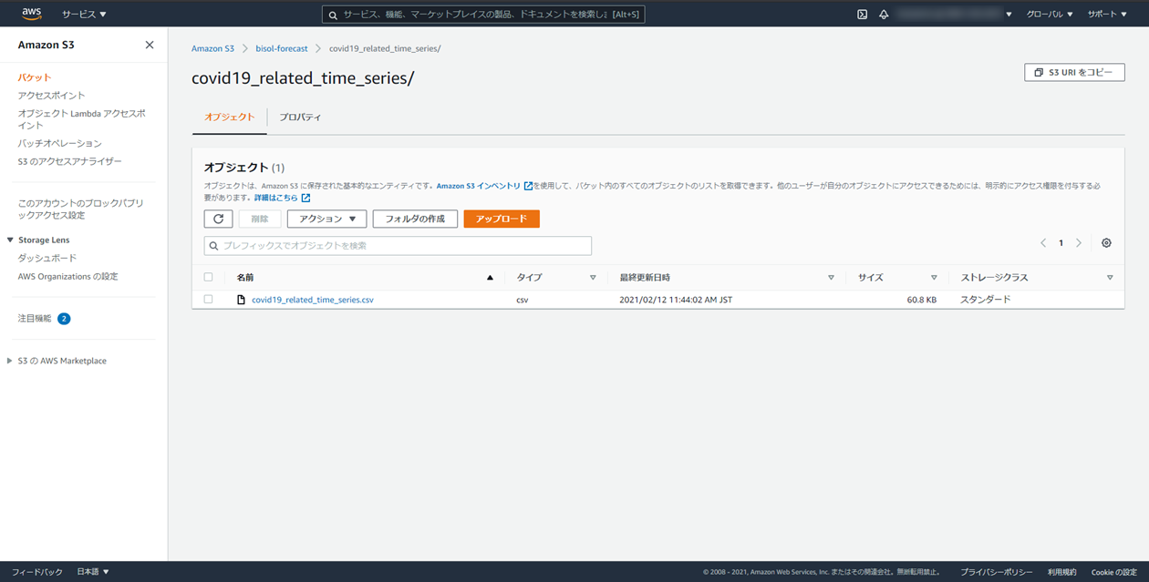 Amazon Forecastの操作に入る前に、時系列予測に使用する各種データを準備し、Amazon S3バケットに格納しておきます。