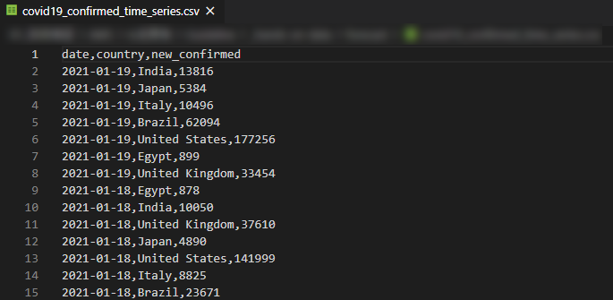 予測したいデータに関する過去の時系列データとして、COVID-19の新規感染者数の時系列データを用意しました。