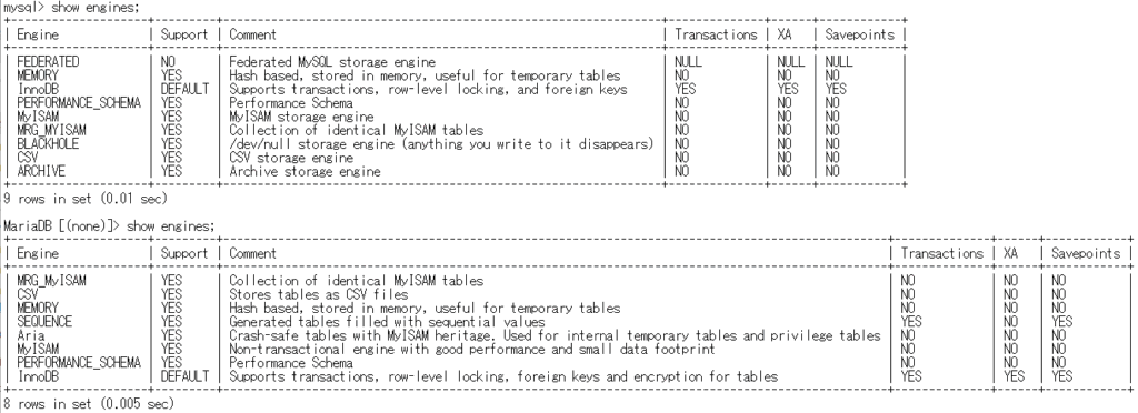 MySQLとMariaDBについて最新バージョンをインストールし、各DBの違いについて検証を行いました。