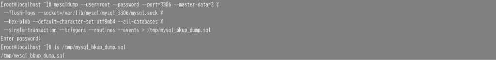 ソース(マスタ)側からmysqldumpでバックアップファイルを取得します。