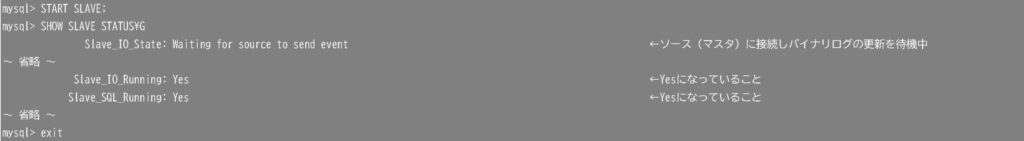 レプリカ(スレーブ)側でレプリケーションを開始します。