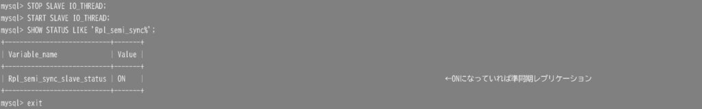 レプリカ(スレーブ)側でI/Oスレッドを再起動し、準同期レプリケーションに切り替えます。